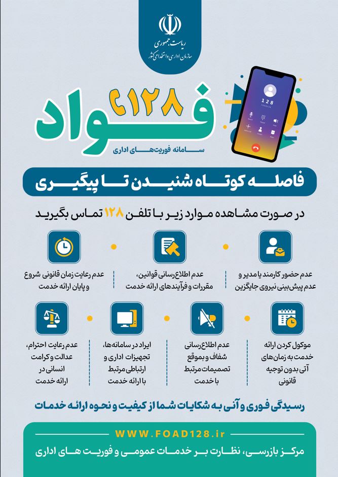 معرفی سامانه فواد 128 جهت رسیدگی فوری به نظرات، پیشنهادها و شکایات مردمی